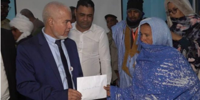 اشرف والي آدرار السيد عبدالله ولد محمد محمود، اليوم الأربعاء في مدينة وادان، على توزيع إعانات نقدية لذوي الاحتياجات الخاصة، مقدمة من طرف وزارة العمل الاجتماعي والطفولة والأسرة، في إطار المكونة التنموية لمهرجان مدائن التراث.