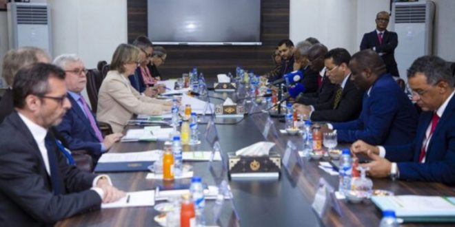 وقدمت المسؤولة الأوروبية الوفد المرافق لها، الذي يضم ممثلين ومديري التعاون الدولي والشراكات الدولية، إضافة إلى مسؤولين من بروكسل، وسفراء دول الاتحاد الأوروبي المعتمدين في موريتانيا، بمن فيهم سفير الاتحاد الأوروبي.